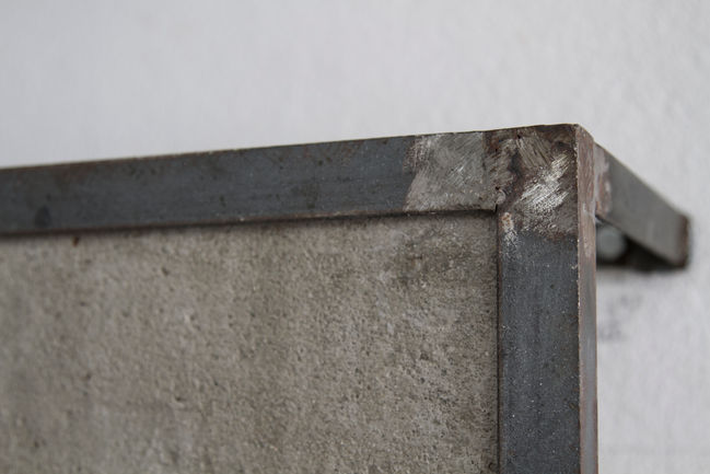 Líneas pintadas sobre hormigón correspondientes a límites geopolíticos amurallados. De izquierda a derecha: Grecia/Turquía, Marruecos/Mauritania, USA/México, Corea del Norte/Corea del Sur y Marruecos/Ceuta (España).