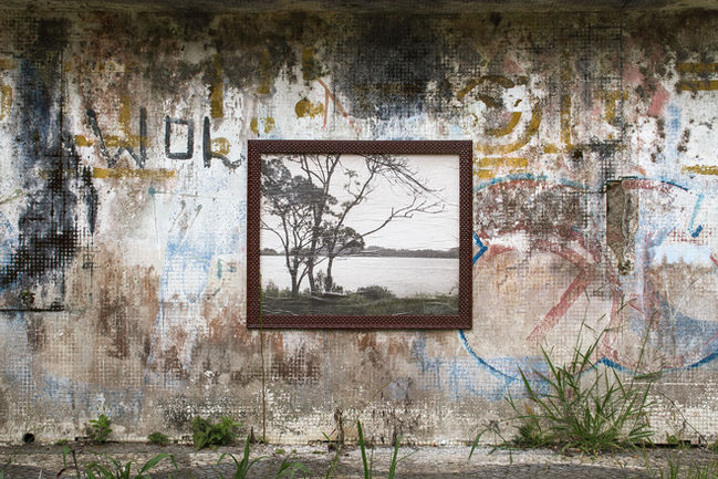 Trabalho produzido em três etapas: 1) A busca de paisagens interrompidas por muros e o salto para produzir fotografias das paisagens existentes no lado privado; 2) Impressão e colagem da fotografia realizada na etapa anterior na face pública do muro junto com a fixação de muldura; 3) Registro da intervenção urbana.